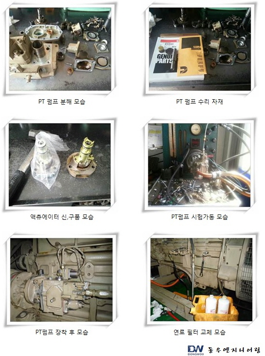 발전기 엔진 오바홀 작업 모습