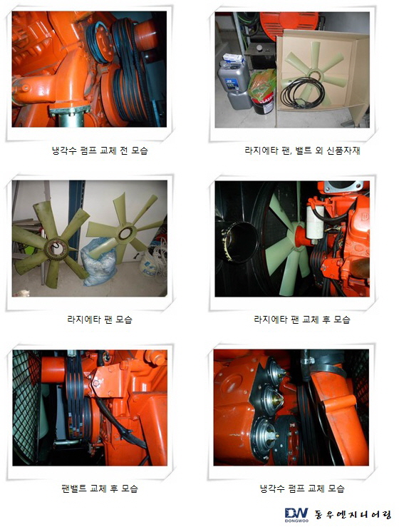 냉각수 펌프 교체 작업 모습