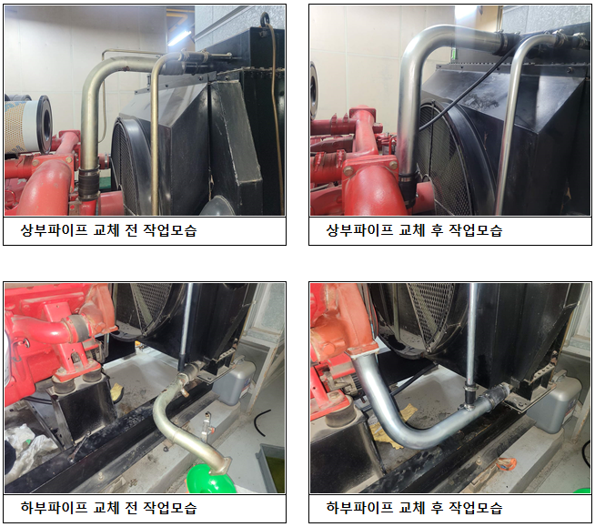 비상발전기 부동액파이프 교체 작업모습