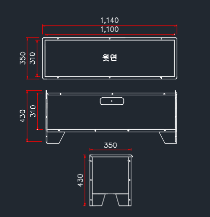 * 크기 : 가로 1140 세로 350 높이 430 (1140*350*430) 아연철판 두께: 1.6T 무게: 약20KG